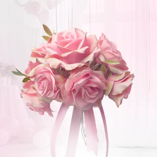 • Средний - роза - 9 шт., гипсофила, упаковка, лента