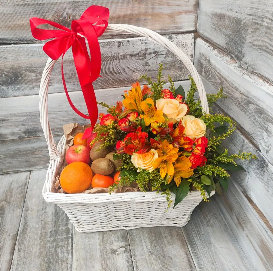 В сочетании с ароматными цветами, такими как розы, альстромерии или герберы, корзина представляет собой идеальный подарок для друзей, близких или коллег. Цветы привносят элегантность и свежесть, создавая гармонию с фруктами. Такой выбор подарка подчеркивает вашу внимательность и индивидуальный подход к каждому человеку.