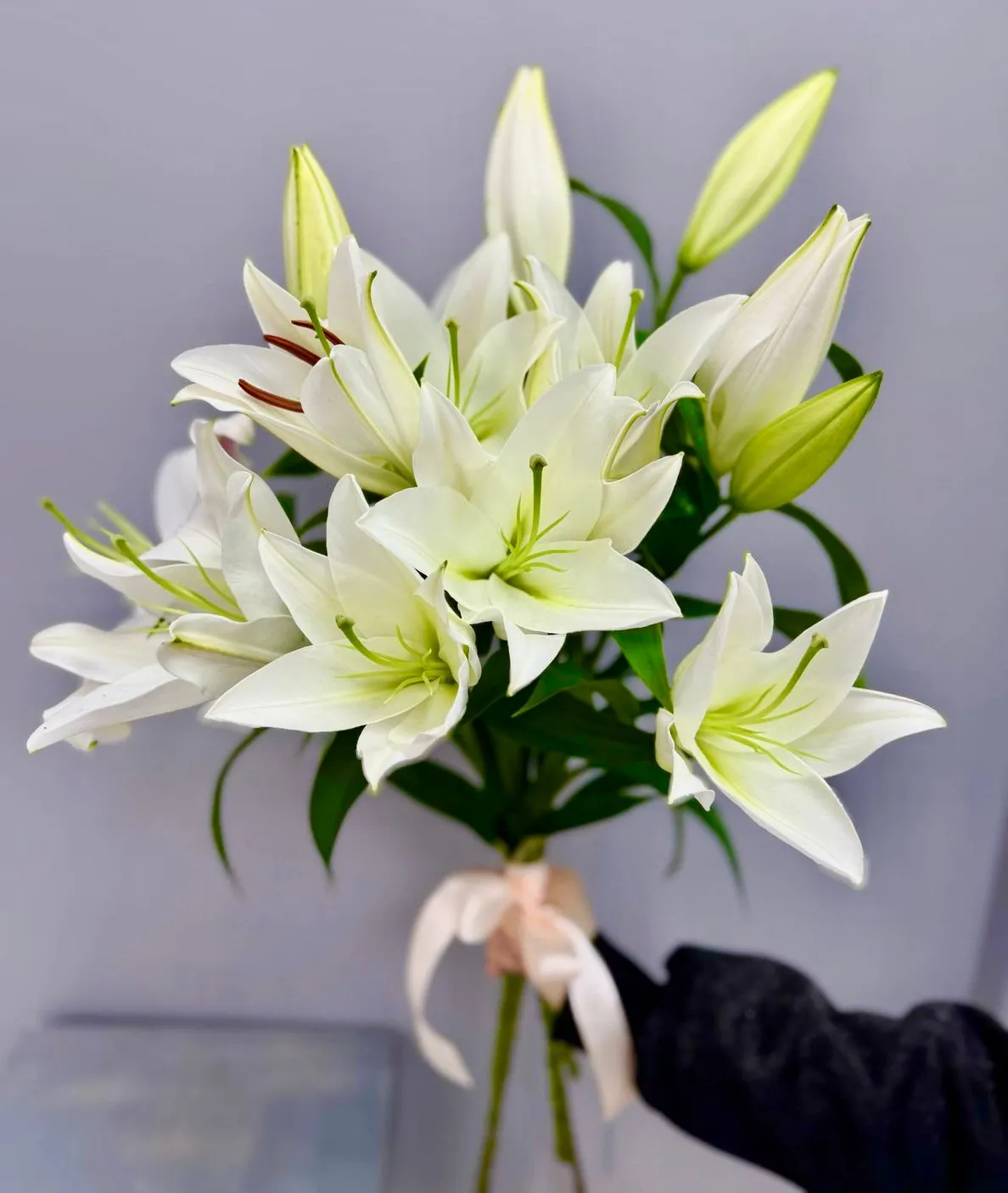 —Букет из белых лилий под ленту