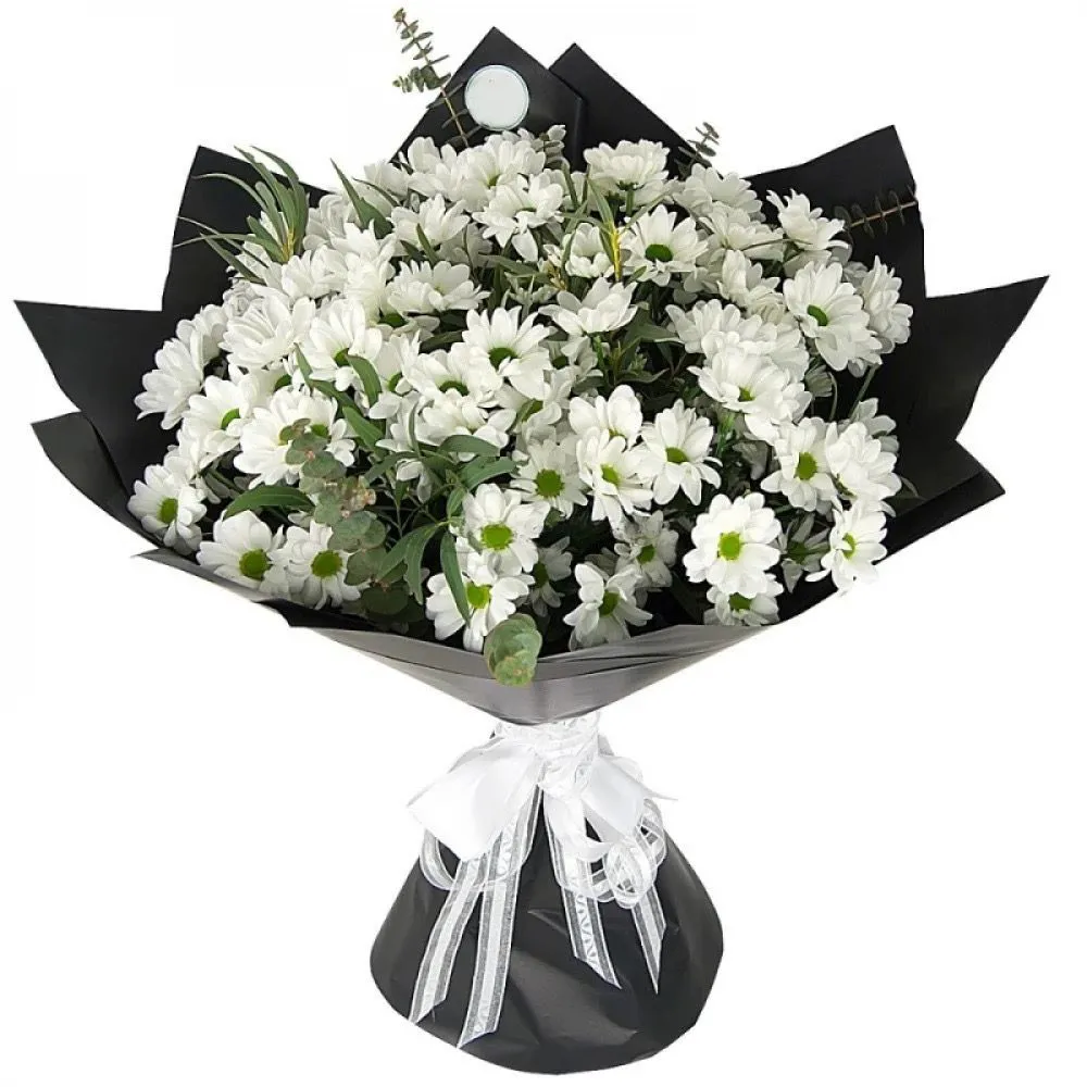 —Траурный букет из белых хризантем и эвкалипта
